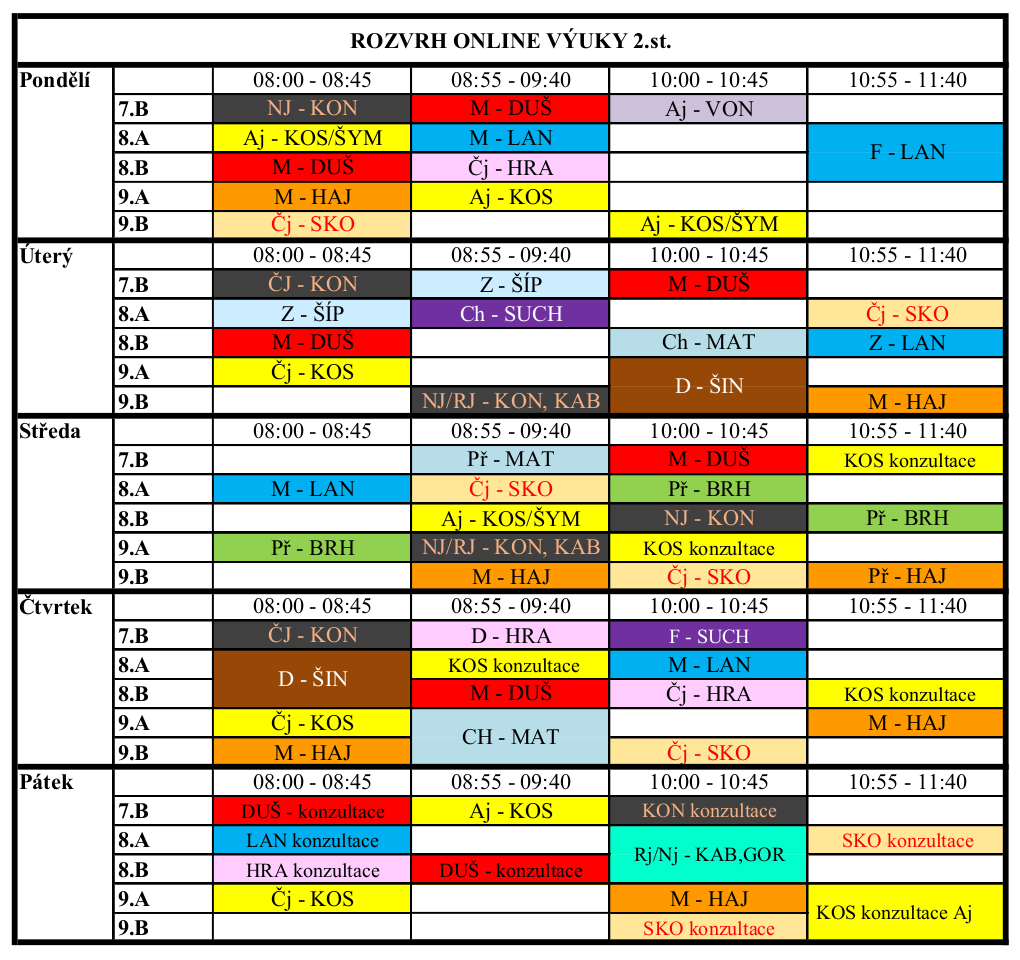 Rozvrh online výuky 2.st. - sudý týden